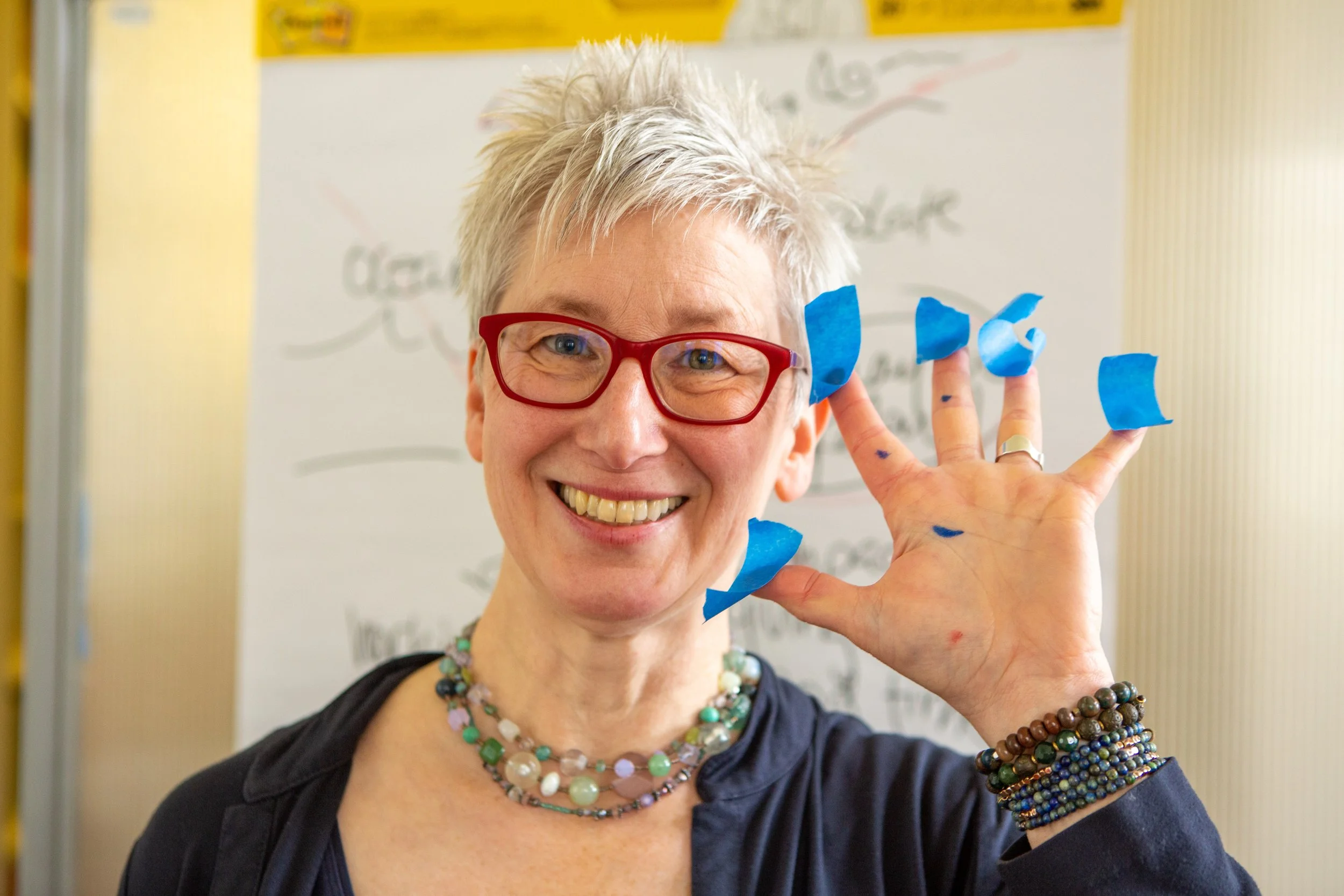 Michelle Hynes, shown here with the trappings of the work she does facilitating workshops for nonprofits